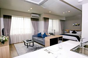 Enjoy a convenient space with a bathtub in Studio C apartment at Roygent Parks Hai [...]